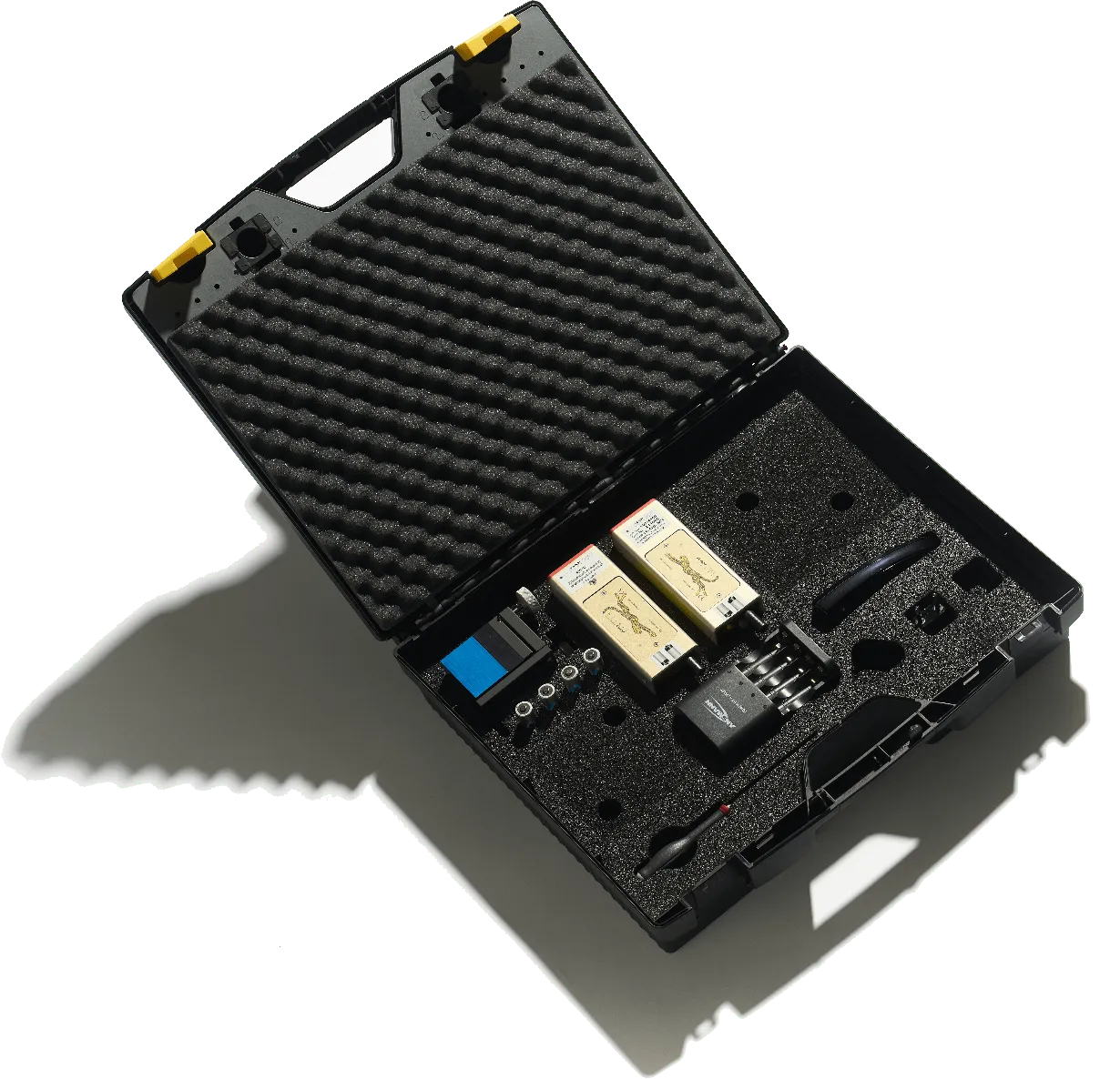 • Work anywhere – the entire system fits into a single lightweight case (under 5 kg), ready to travel with you